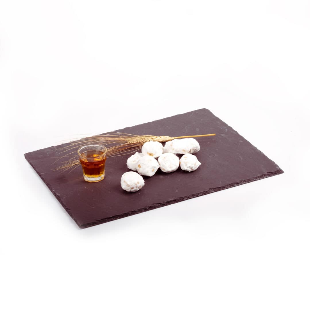 Ingredienti: Farina GRANO tenero tipo “1”, zucchero, acqua, olio di oliva, UOVA, ammoniaca, zucchero a velo, liquore anice.